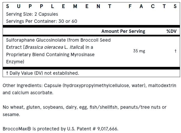 BroccoMax ® contiene una quantità standardizzata di SGS, glucosinolato di sulforafano (noto anche come glucorafanina) e utilizza un processo brevettato che preserva la mirosinasi, l'enzima presente nei broccoli che metabolizza l'SGS nell'intestino tenue nel composto isotiocianato organosolforoso sulforafano.