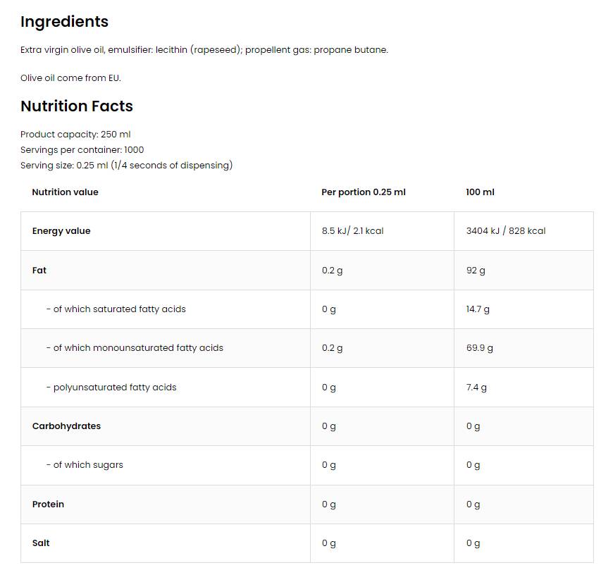 Lo spray da cucina all'olio d'oliva è un aiuto ideale in cucina che non solo semplifica la preparazione dei piatti, ma ne migliora anche la salubrità. Riduce la necessità di aggiungere grassi, contribuendo a controllare l'apporto calorico senza compromettere il gusto. Ricco di grassi monoinsaturi e antiossidanti, l'olio d'oliva offre numerosi benefici per la salute, tra cui il supporto per la salute cardiaca e la riduzione delle infiammazioni.