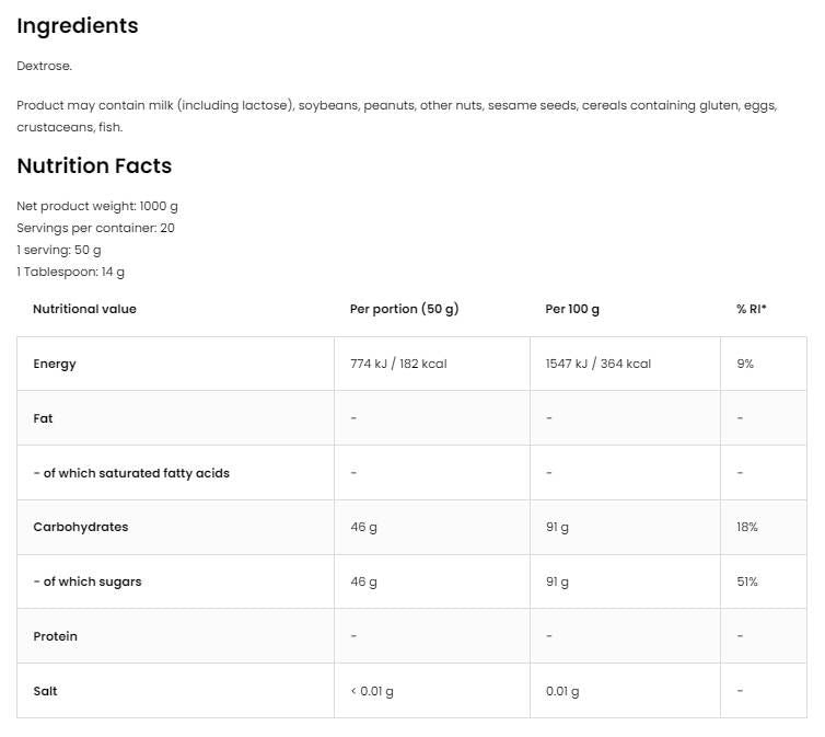 OstroVit Destrosio extra puro Può essere utilizzato per reintegrare i carboidrati dopo l'allenamento e come efficiente trasportatore di creatina e aminoacidi. Il pieno reintegro del glicogeno dopo l'allenamento è un aspetto molto importante per chiunque cerchi risultati di fitness, quindi affidatevi alla qualità OstroVit Destrosio extra puro ti offre il destrosio farmaceuticamente più puro al mondo, garanzia di successo assicurato!