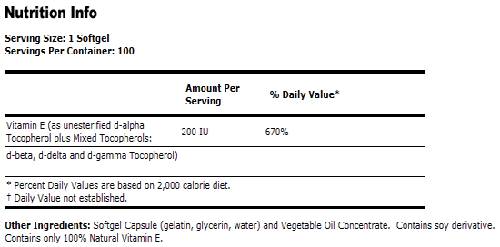 Vitamina E-200 IU D-Alpha Tcoferoli-100 capsule gel