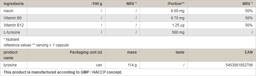 Istruzioni per l'uso : Tirosina - da 1 a 2 capsule al giorno, preferibilmente a stomaco vuoto con acqua o succo di frutta.