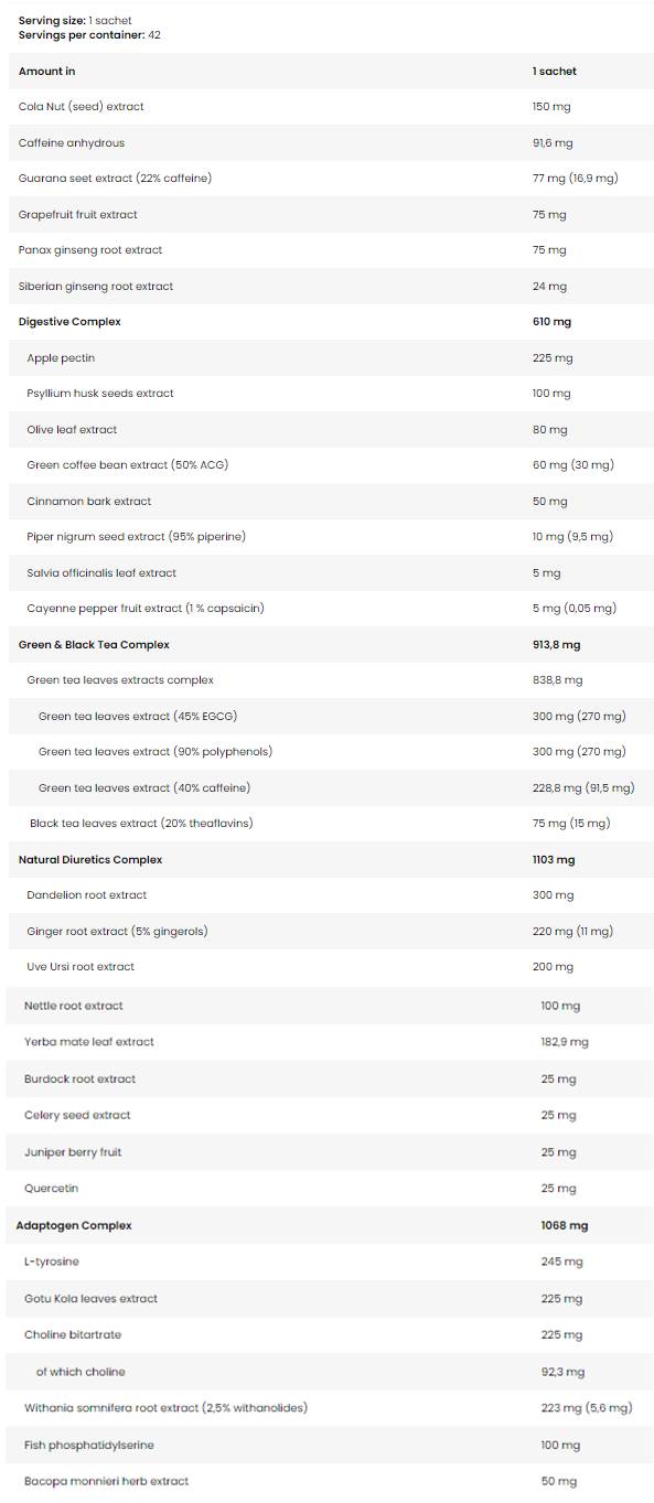 • Estratto di pompelmo : attiva il metabolismo dei grassi e aumenta l'energia.