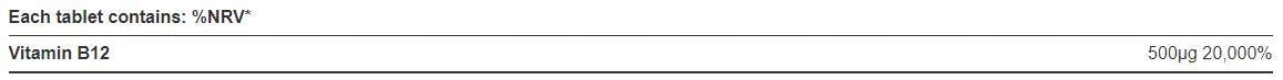 Vitamina B12 Cianocobalamina 500 mcg fornisce 500 mcg di vitamina B12 .