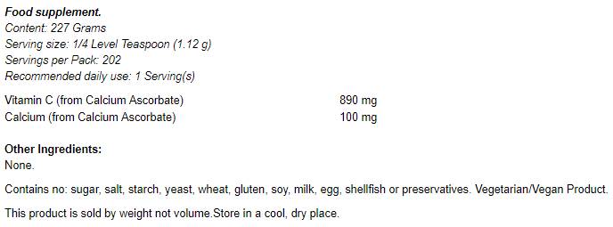 Ascorbato di calcio - Polvere tampone pura 227 grammi