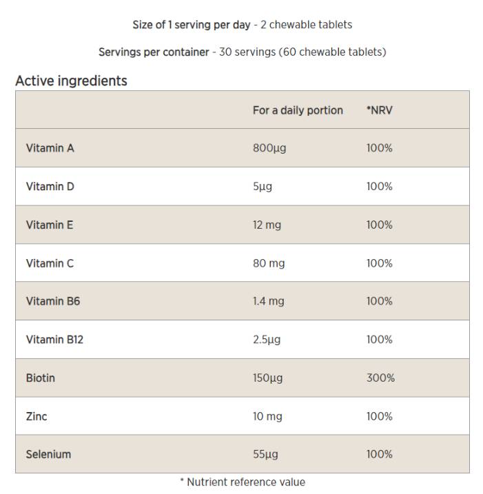Indicazioni: Assumere 2 compresse masticabili al giorno.
