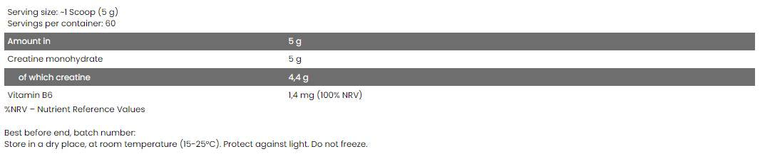 Creatina monoidrato è una polvere facilmente solubile con un aroma naturale, che fornisce una fonte di creatina altamente assorbibile!