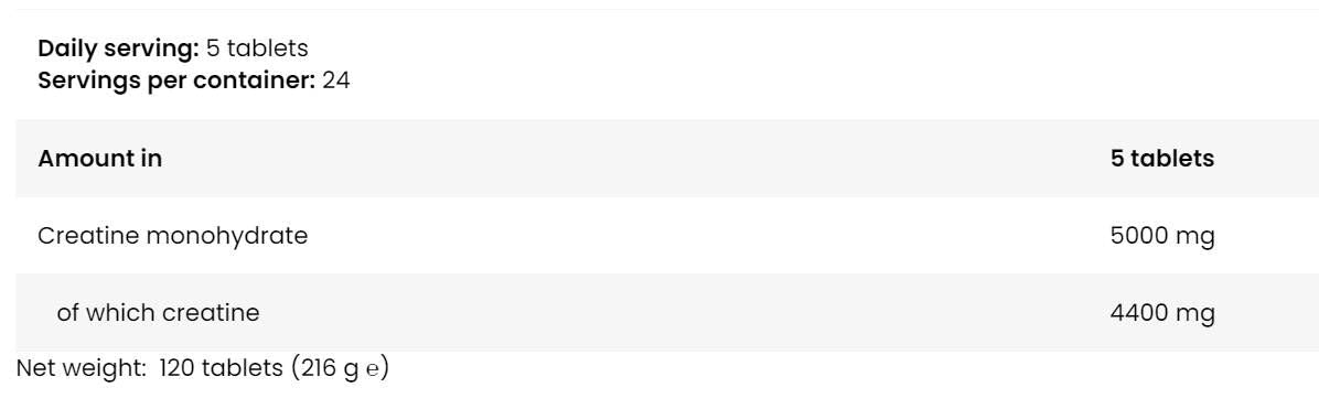 La creatina monoidrato è l'ingrediente principale dell'integratore, che aiuta ad aumentare forza, potenza e resistenza muscolare. La creatina è utile anche per aumentare la massa muscolare.