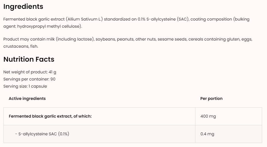 Importante: evitare l'assunzione del prodotto da parte di persone allergiche all'aglio. Si consiglia di consultare un medico prima dell'uso in caso di problemi di salute preesistenti.