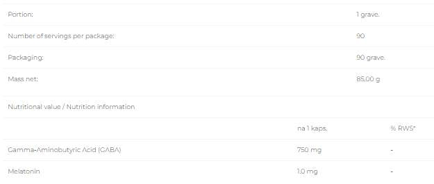 • Contiene 750 mg di GABA e 1 mg di melatonina per porzione