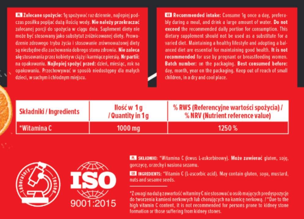 Vitamina C 1000 mg di polvere - 1000 grammi
