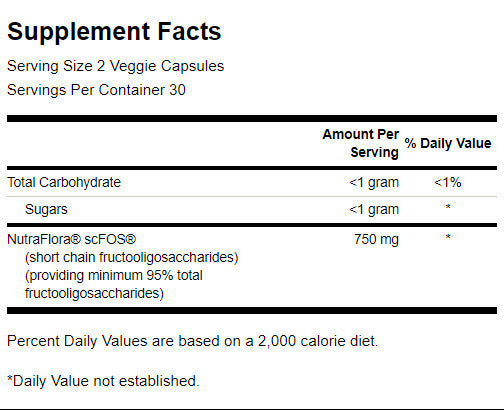 SwansonNutraflora è un prebiotico puro che contiene il 95% di fruttooligosaccaridi. I fruttooligosaccaridi nutrono i batteri benefici dell'intestino e ne favoriscono la crescita naturale. Un solo grammo al giorno può aumentare il numero di batteri buoni nell'organismo del 500% in sole quattro settimane di utilizzo.