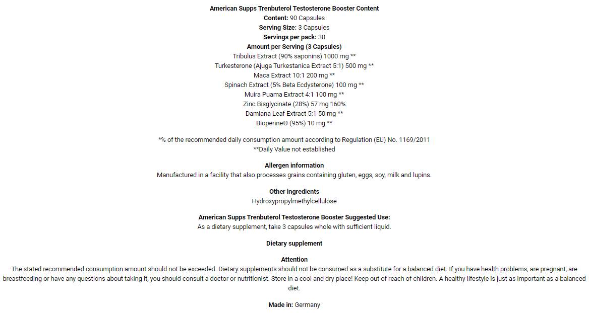 Trenbuterolo® | Integratore anabolico tedesco per la costruzione muscolare con Turkesterone - 90 capsule