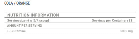Glutammina aromatizzata da BATTERY Disponibile in due fantastici gusti: Cola e Arancia. La porzione consigliata è di 6 grammi, per un totale di 83 porzioni per confezione.