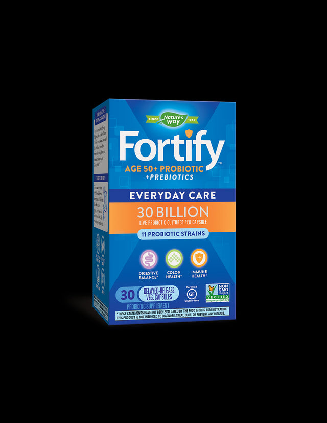 Il probiotico Primadophilus Fortify™ per adulti 50+ è focalizzato sulla salute intestinale e, più specificamente, sulla salute del colon. Ogni capsula contiene 30 miliardi di probiotici attivi, principalmente bifidobatteri. Presenta proprietà antiossidanti, antinfiammatorie e immunostimolanti e aiuta a sopprimere la crescita di batteri patogeni.