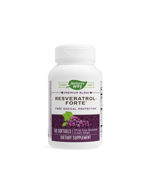 Resveratrol Forte dell'azienda americana Nature's Way è un prodotto altamente efficace che protegge le cellule dallo stress ossidativo e contribuisce al normale funzionamento di cuore, fegato e vasi sanguigni. Ogni capsula softgel equivale al resveratrolo contenuto in 118 bottiglie di vino rosso.