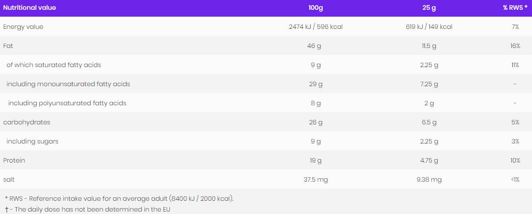 Avvertenze: Da evitare per persone allergiche alla frutta secca. Consultare un medico prima dell'uso in caso di patologie specifiche.