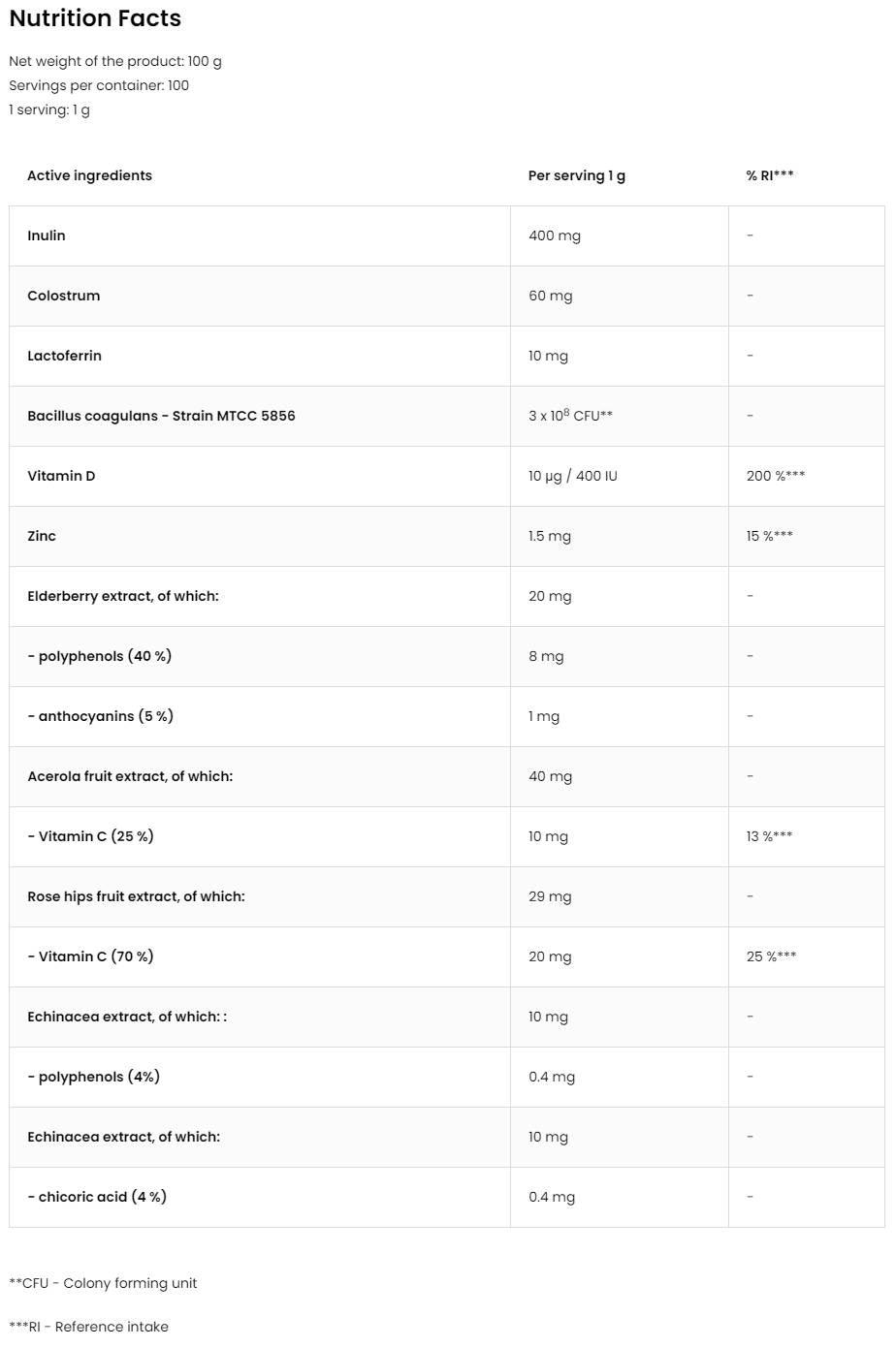 Immune Aid Powder Kids è specificamente formulato per fornire il supporto necessario al sistema immunitario del tuo bambino. Grazie alla sua ricca composizione di vitamine e minerali, questo prodotto contribuisce ad aumentare l'energia e il benessere generale. Studi dimostrano che l'assunzione regolare di ingredienti che rafforzano il sistema immunitario può ridurre la frequenza di raffreddori e altre malattie virali nei bambini.