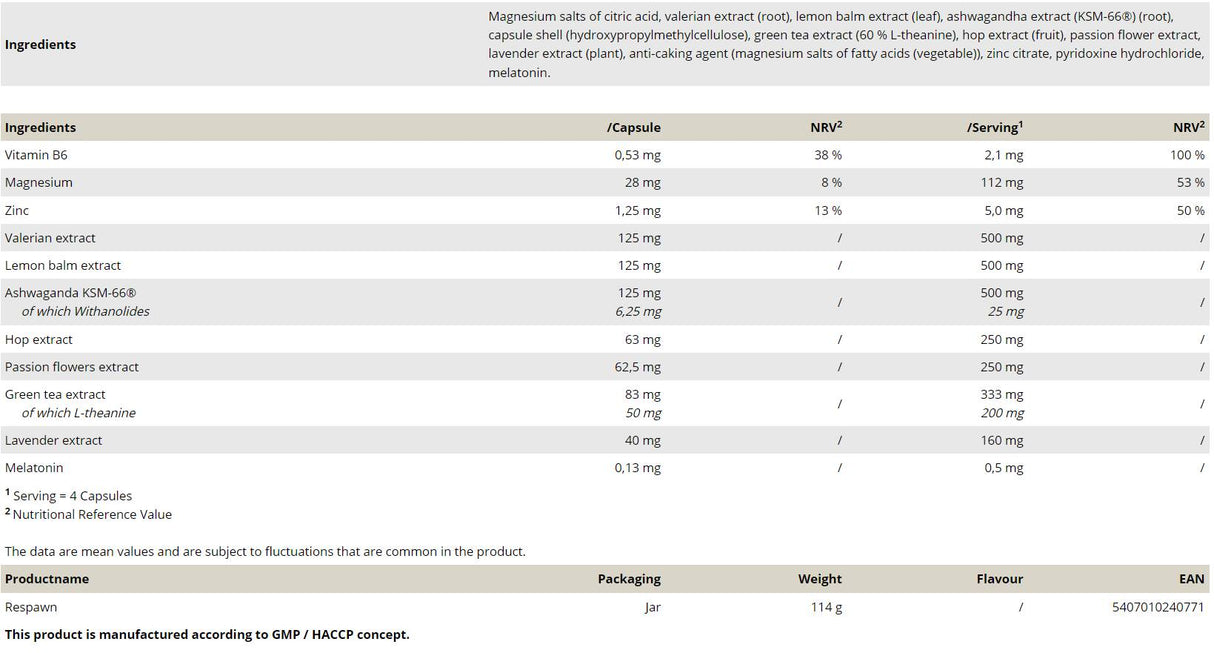 Respawn | Con KSM -66 Ashwagandha - 120 capsule