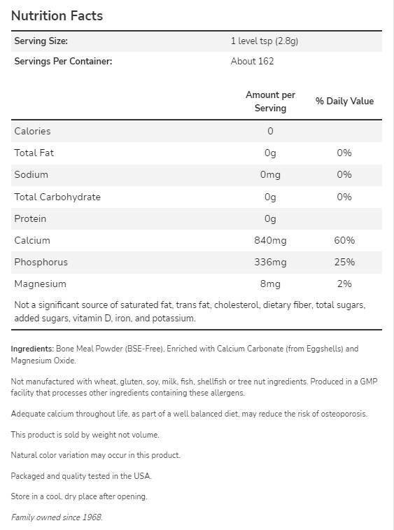 Farina d'ossa in polvere | Ottima fonte di calcio 454 grammi