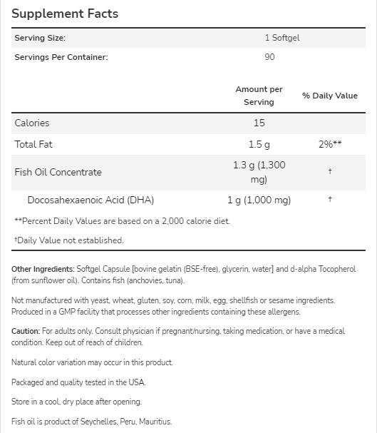 DHA - 1000 | Supporto cerebrale 90 capsule molli