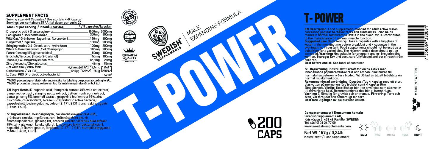 I componenti sopra menzionati rappresentano solo una frazione di tutti gli ingredienti che compongono T-Power un vero vincitore tra Testosterone booster. Come "ciliegina sulla torta": Swedish Supplements hanno aggiunto le quantità necessarie di zinco e vitamina D, entrambi i quali svolgono un ruolo importante nel garantire un controllo Testosterone produzione.
