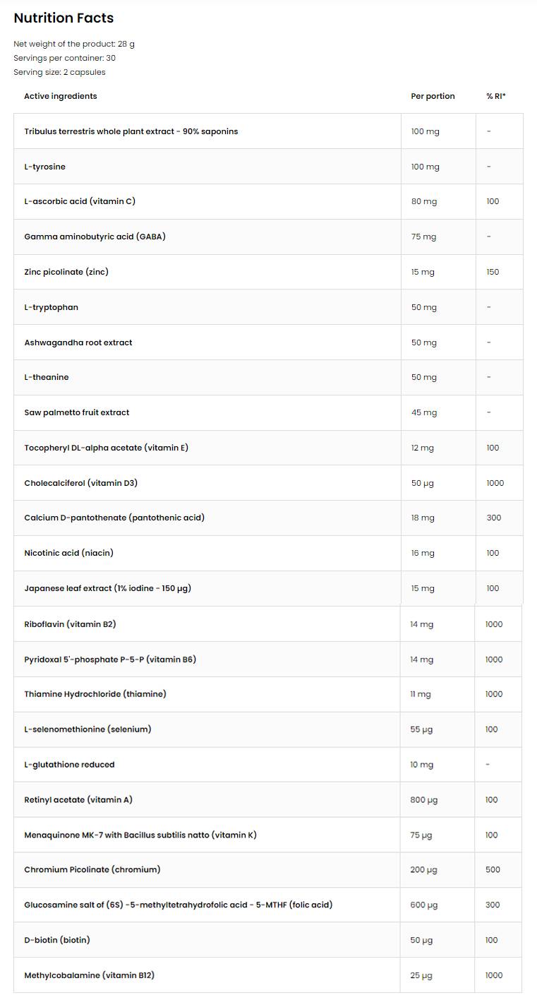 Studi scientifici hanno confermato che l'Ashwagandha può ridurre i livelli di cortisolo, un ormone associato allo stress, e migliorare le prestazioni fisiche. Il Tribulus terrestris è stato collegato a un aumento significativo del testosterone e della libido, e diversi studi dimostrano che il Saw Palmetto può ridurre i sintomi dell'iperplasia prostatica benigna.