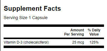 La formula di vitamina D-3 più biologicamente attiva. Il corpo produce una certa quantità di vitamina D-3 quando esposto alla luce solare, ma per le persone che vivono nei paesi nordici, dove la luce solare è scarsa, questa quantità è insufficiente. La nostra formula di vitamina D-3 fornisce ben 1000 UI di questa importante vitamina. Contribuisce a mantenere la salute delle ossa aiutando l'organismo ad assorbire il calcio. Contiene 30 capsule per confezione.