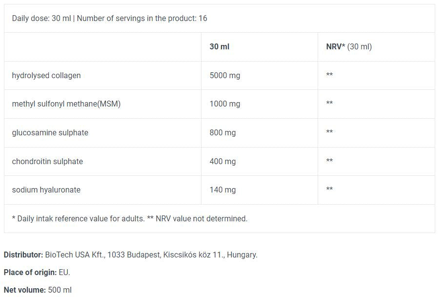 BioTech USA Arthro Forte Liquido/500 ml è un integratore alimentare di alta qualità che contiene un complesso di principi attivi studiati per mantenere la salute di articolazioni, tendini e cartilagini. Questo prodotto è studiato per rafforzare i processi di recupero, alleviare il dolore e avere un potente effetto antinfiammatorio.