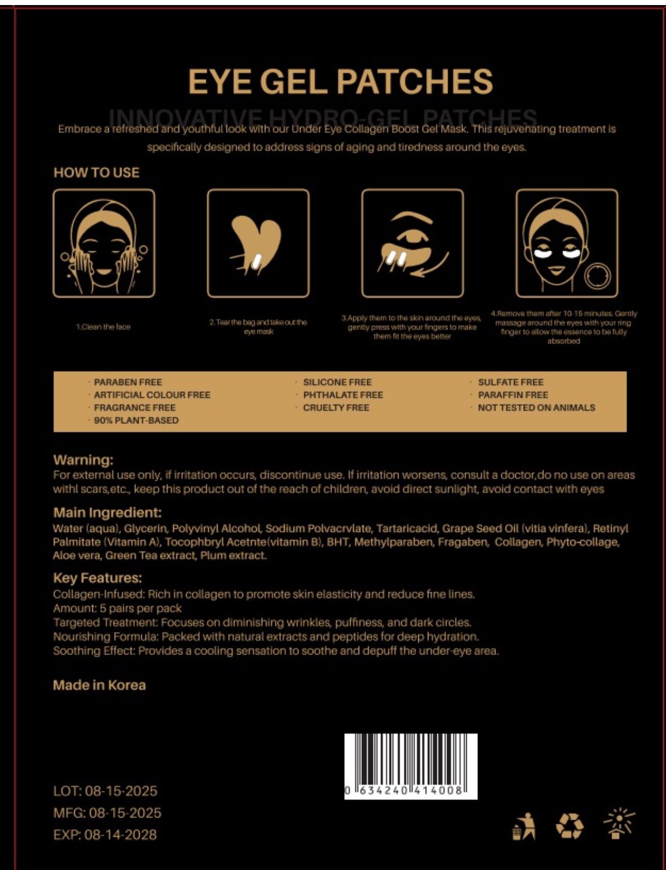 I cerotti per gli occhi con collagene ed essenza d'oro sono un trattamento nutriente per la zona del contorno occhi che favorisce l'idratazione e l'elasticità della pelle.