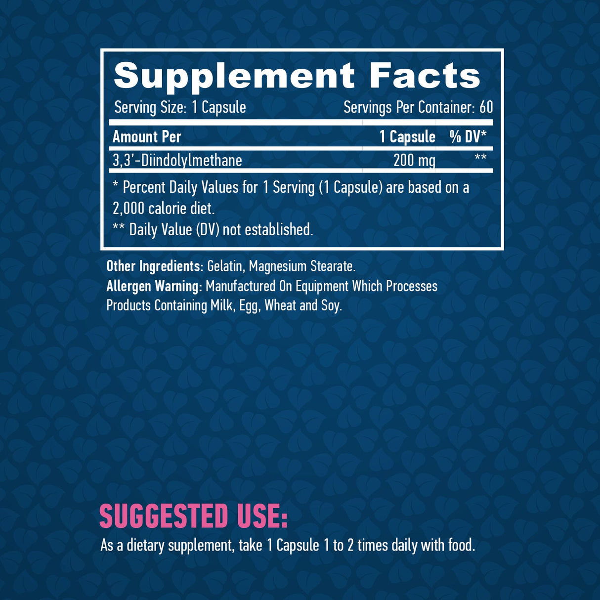 La ricerca scientifica suggerisce che il DIM possa svolgere un ruolo nella prevenzione di alcuni tipi di cancro, grazie alle sue proprietà antiossidanti. È stato anche scoperto che il DIM aiuta a gestire i sintomi della sindrome premestruale (PMS) e a regolare il metabolismo degli estrogeni, estremamente importante per le donne in età riproduttiva.