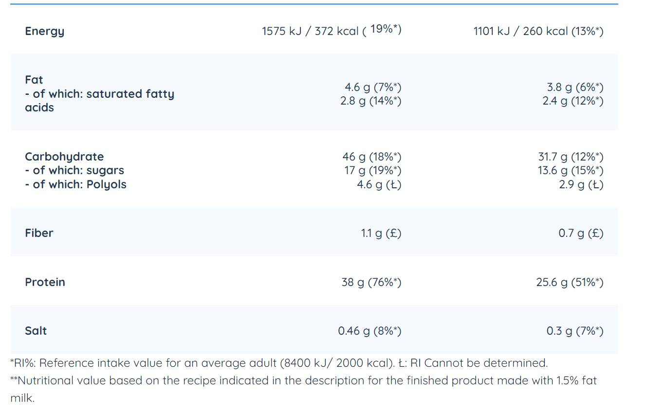 Versate l'intero contenuto della busta in una ciotola e mescolate con 500 ml di latte scremato all'1,5%. Versate l'impasto in una tortiera e cuocete per 35-45 minuti in forno preriscaldato a 180 gradi. Lasciate riposare per 30 minuti, poi tagliatelo in 8 parti uguali e gustate il vostro Blondie paradisiaco!